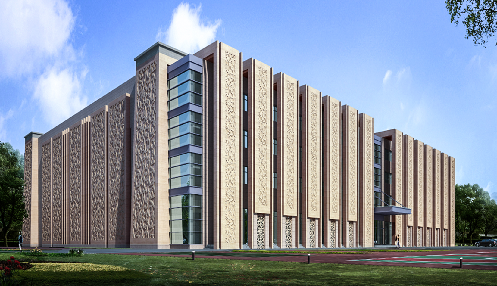 民俗造型、契丹浮雕、當(dāng)?shù)厥?,設(shè)計源于當(dāng)?shù)匚幕?,歸于時代潮流,簡潔的造型,龐大的體量使其成為莫旗的城市標(biāo)志性建筑。