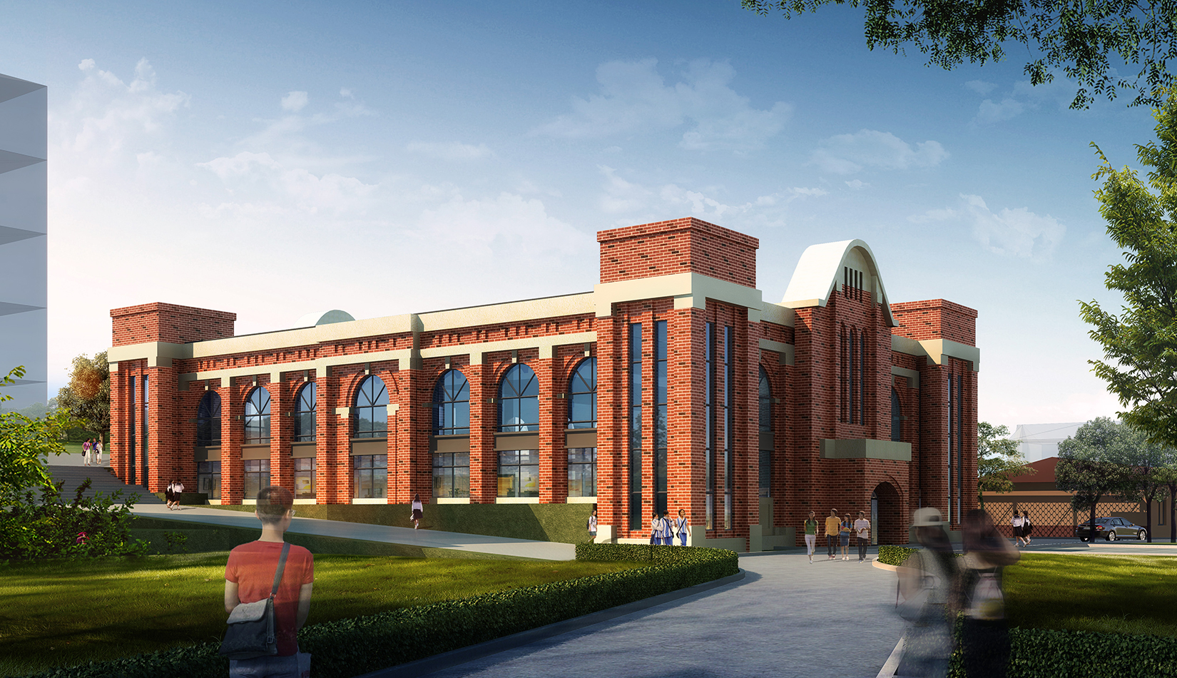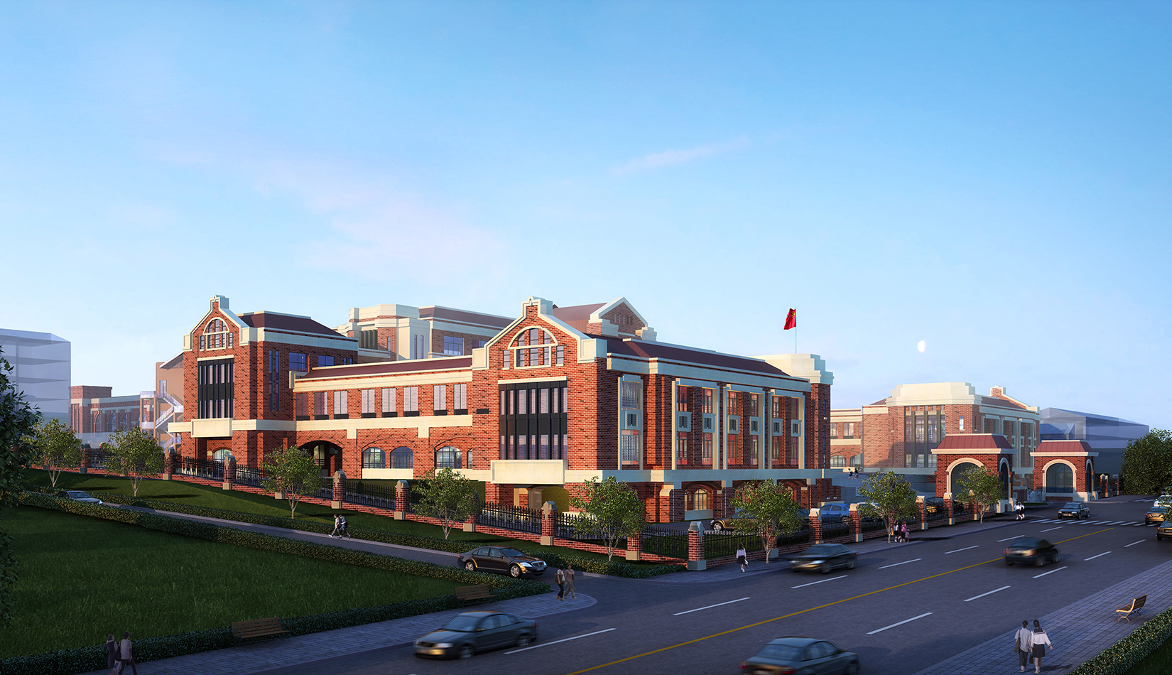 以打造“個性化”“特色鮮明”的學(xué)校為基本目標,創(chuàng)造均衡合理的校園布局,體驗豐富的校園空間;按照“以人為本”的原則,營造充滿活力的室外環(huán)境,將教育從教育課堂擴展到學(xué)校的每個角落;通過庭院連廊聯(lián)系校園功能,創(chuàng)造大量的室外交流空間和灰空間,創(chuàng)造優(yōu)良的校園環(huán)境