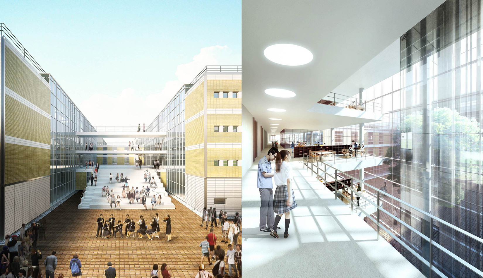 從基地及周邊地區(qū)的城市環(huán)境出發(fā),探索建筑在城市肌理、功能分區(qū)、教育建筑形象等方面的形態(tài)生成因素,力求創(chuàng)造一個(gè)鮮明個(gè)性、現(xiàn)代、高效、體現(xiàn)教育建筑特色的城市建筑形象,為整個(gè)地域帶來嶄新的城市肌理。