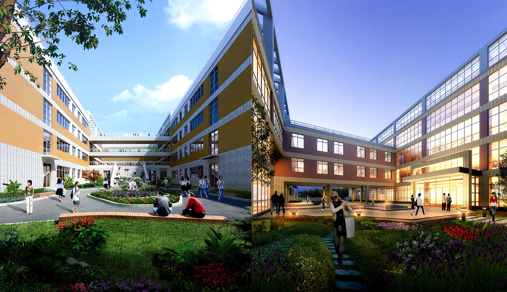 通過對(duì)功能、流線的科學(xué)整合與單體建筑的精心設(shè)計(jì),運(yùn)用現(xiàn)代的建筑語(yǔ)言營(yíng)造富有強(qiáng)烈時(shí)代感的校園環(huán)境,并不斷探索開放、和諧、人文的校園設(shè)計(jì)策略,使建筑體現(xiàn)時(shí)代特征。